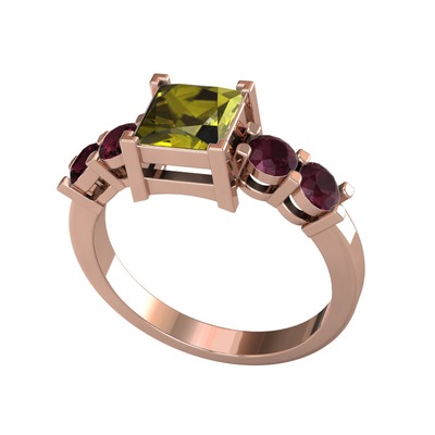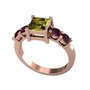 Peridot ve kök yakut 925 ayar rose altın kaplama gümüş yüzük