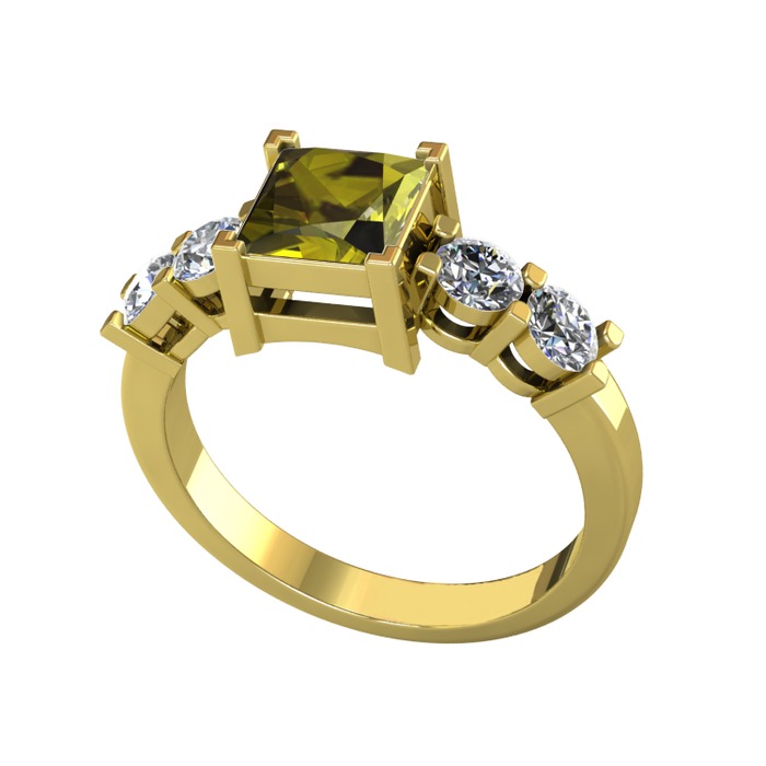 Peridot ve pırlanta 925 ayar altın kaplama gümüş yüzük (0.64 karat)