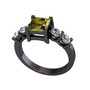 Peridot ve pırlanta 925 ayar siyah rodyum kaplama gümüş yüzük (0.64 karat)