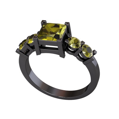 Peridot 925 ayar siyah rodyum kaplama gümüş yüzük