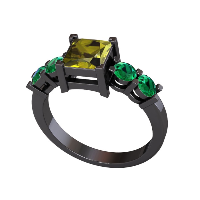 Peridot ve yeşil kuvars 925 ayar siyah rodyum kaplama gümüş yüzük