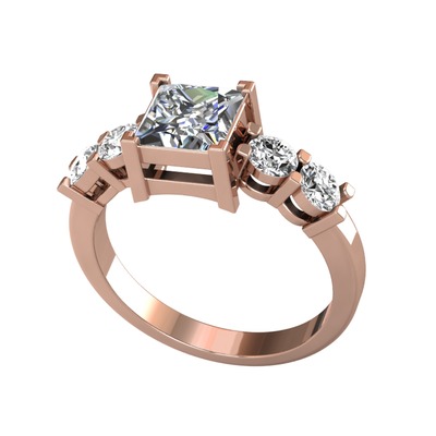 Pırlanta ve beyaz zirkon 14 ayar rose altın yüzük (1.24 karat)