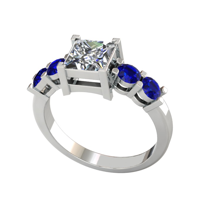 Pırlanta ve lab safir 14 ayar beyaz altın yüzük (1.24 karat)