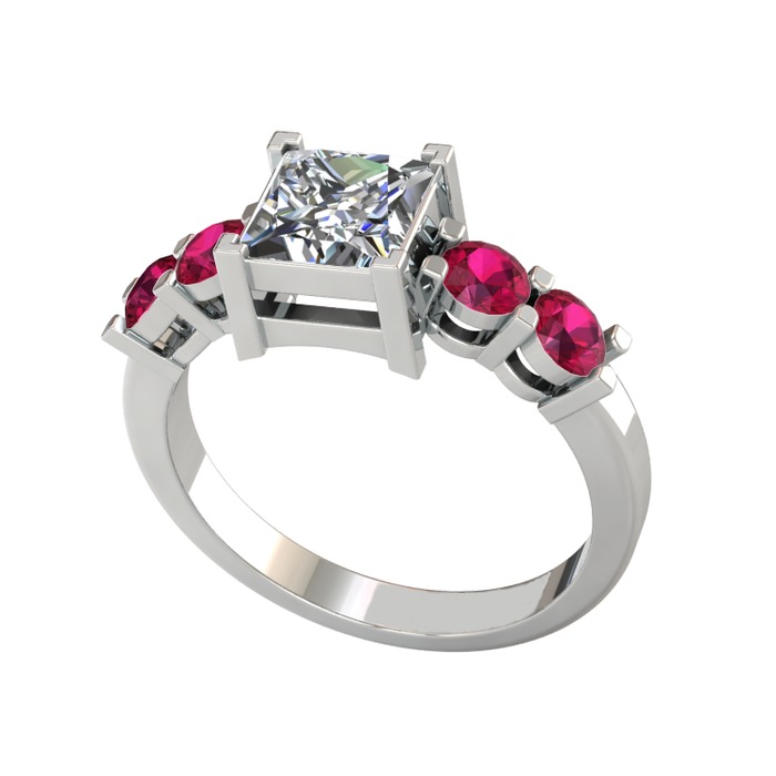 Pırlanta ve rodolit garnet 8 ayar beyaz altın yüzük (1.24 karat)