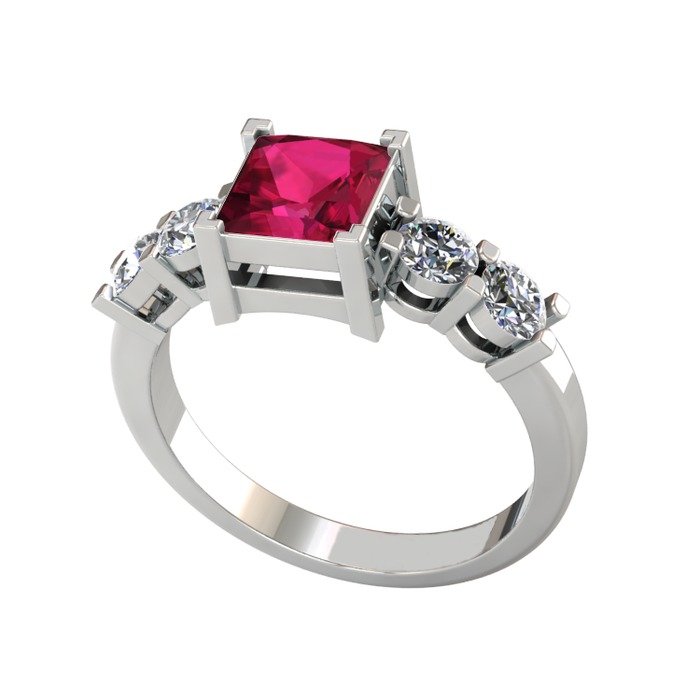 Rodolit garnet ve pırlanta 18 ayar beyaz altın yüzük (0.64 karat)