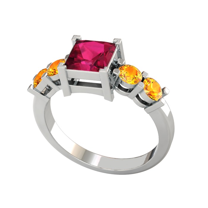 Rodolit garnet ve sitrin 925 ayar gümüş yüzük
