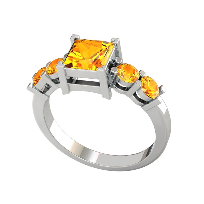 Sitrin 18 ayar beyaz altın yüzük