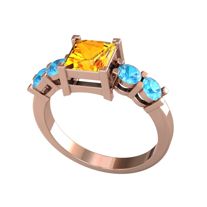 Sitrin ve akuamarin 925 ayar rose altın kaplama gümüş yüzük