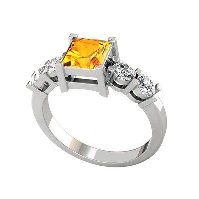 Sitrin ve beyaz zirkon 925 ayar gümüş yüzük