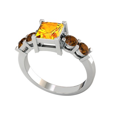 Sitrin ve dumanlı kuvars 925 ayar gümüş yüzük
