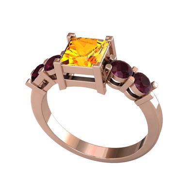 Sitrin ve kök yakut 8 ayar rose altın yüzük