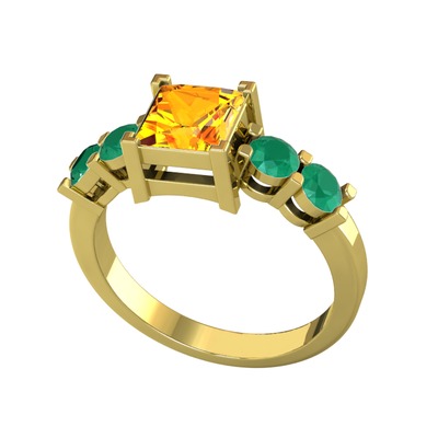 Sitrin ve kök zümrüt 18 ayar altın yüzük