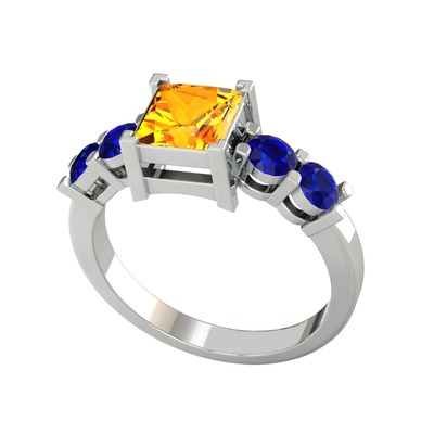 Sitrin ve lab safir 14 ayar beyaz altın yüzük