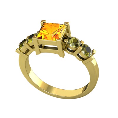 Sitrin ve peridot 925 ayar altın kaplama gümüş yüzük
