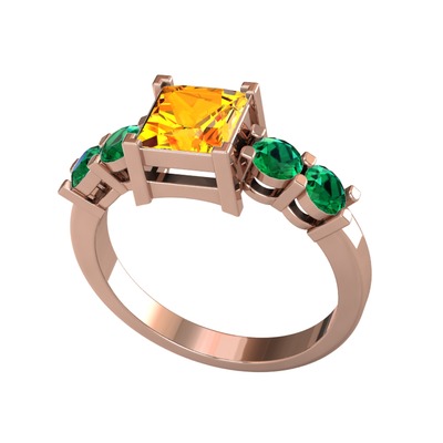 Sitrin ve yeşil kuvars 8 ayar rose altın yüzük