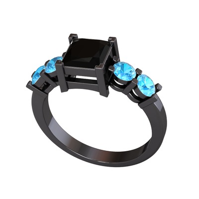 Siyah zirkon ve akuamarin 925 ayar siyah rodyum kaplama gümüş yüzük