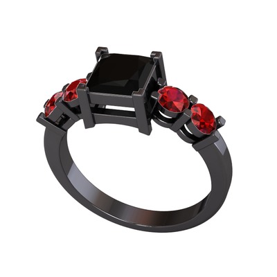 Siyah zirkon ve garnet 925 ayar siyah rodyum kaplama gümüş yüzük