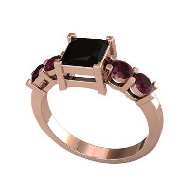 Siyah zirkon ve kök yakut 14 ayar rose altın yüzük