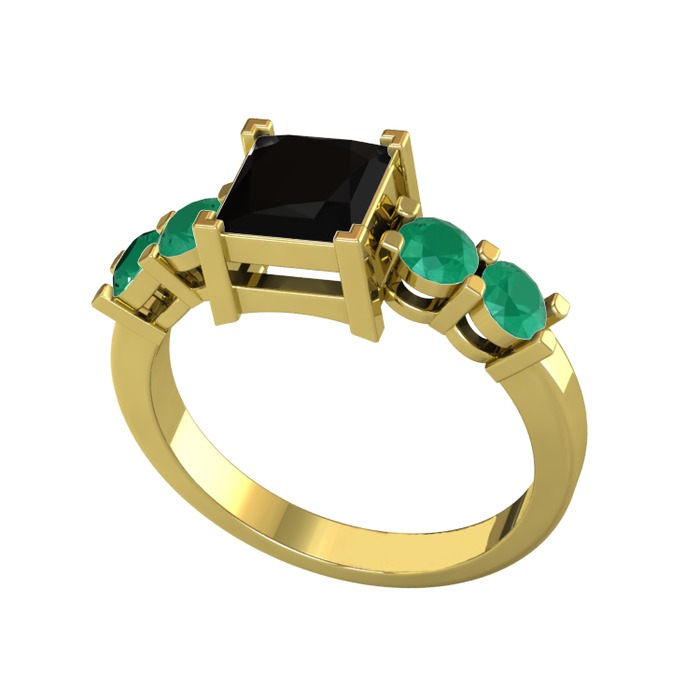Siyah zirkon ve kök zümrüt 18 ayar altın yüzük