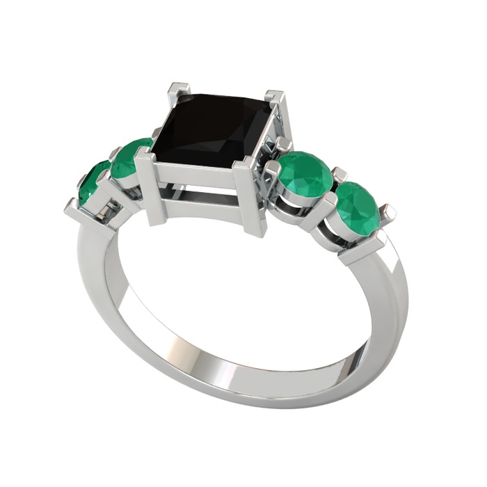 Siyah zirkon ve kök zümrüt 18 ayar beyaz altın yüzük