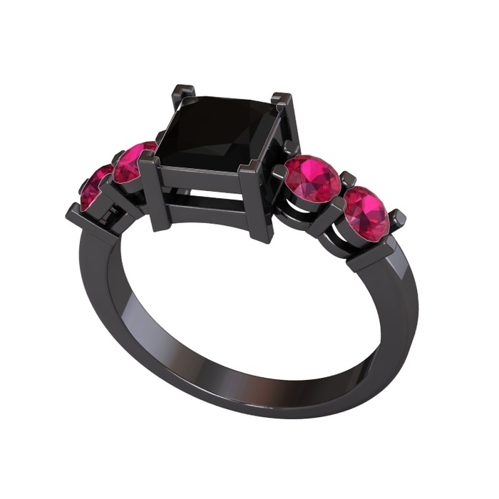 Siyah zirkon ve rodolit garnet 925 ayar siyah rodyum kaplama gümüş yüzük