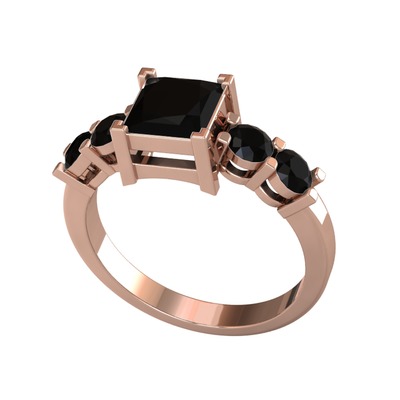 Siyah zirkon 925 ayar rose altın kaplama gümüş yüzük