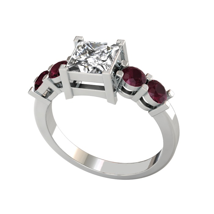 Swarovski ve kök yakut 14 ayar beyaz altın yüzük