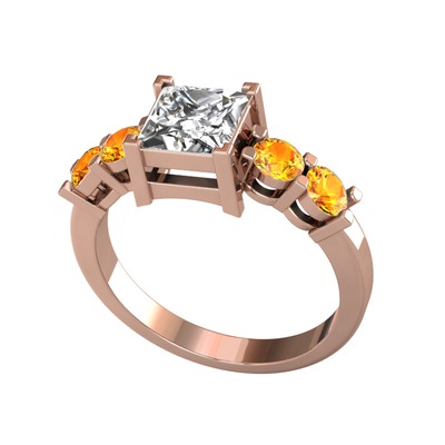 Swarovski ve sitrin 925 ayar rose altın kaplama gümüş yüzük