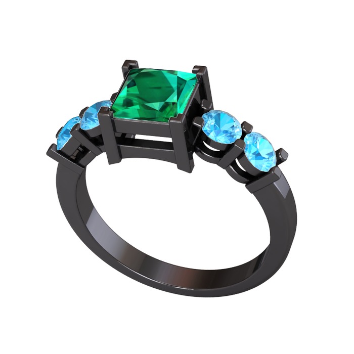 Yeşil kuvars ve akuamarin 925 ayar siyah rodyum kaplama gümüş yüzük