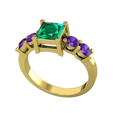 Yeşil kuvars ve ametist 18 ayar altın yüzük
