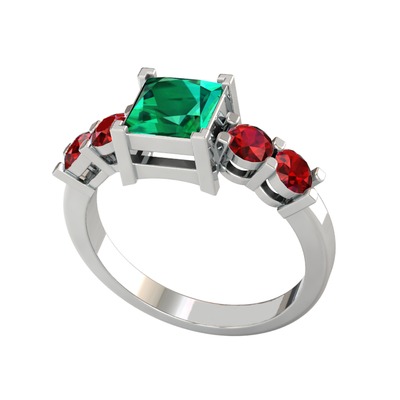 Yeşil kuvars ve garnet 18 ayar beyaz altın yüzük