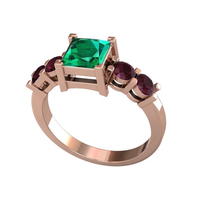 Yeşil kuvars ve kök yakut 18 ayar rose altın yüzük