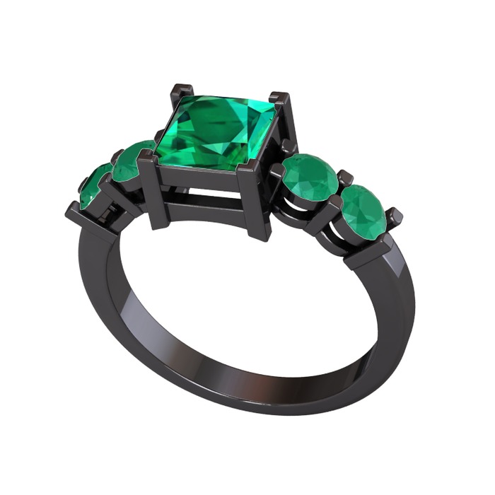 Yeşil kuvars ve kök zümrüt 925 ayar siyah rodyum kaplama gümüş yüzük