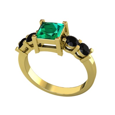 Yeşil kuvars ve siyah zirkon 8 ayar altın yüzük