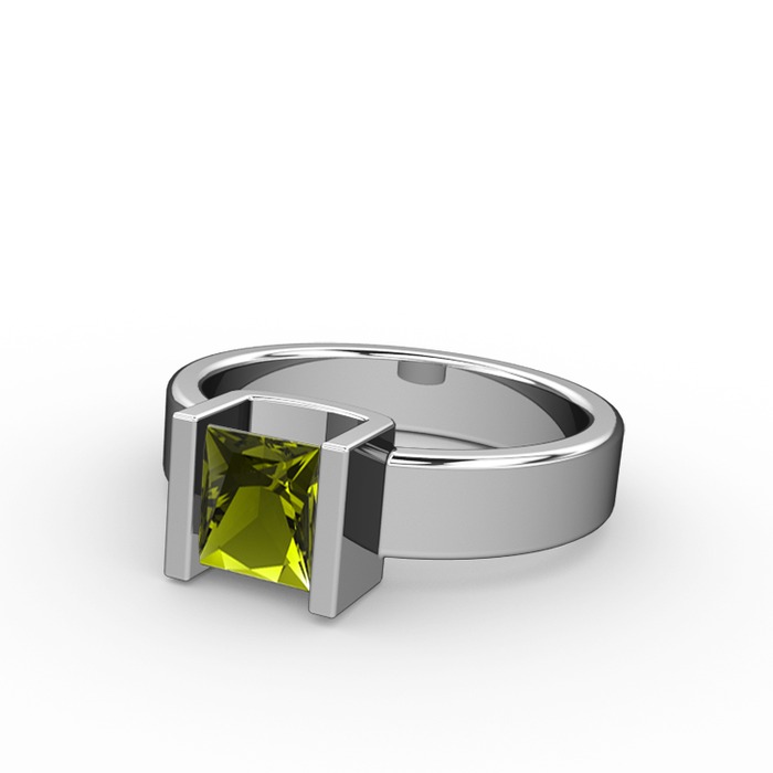 Peridot 18 ayar beyaz altın yüzük