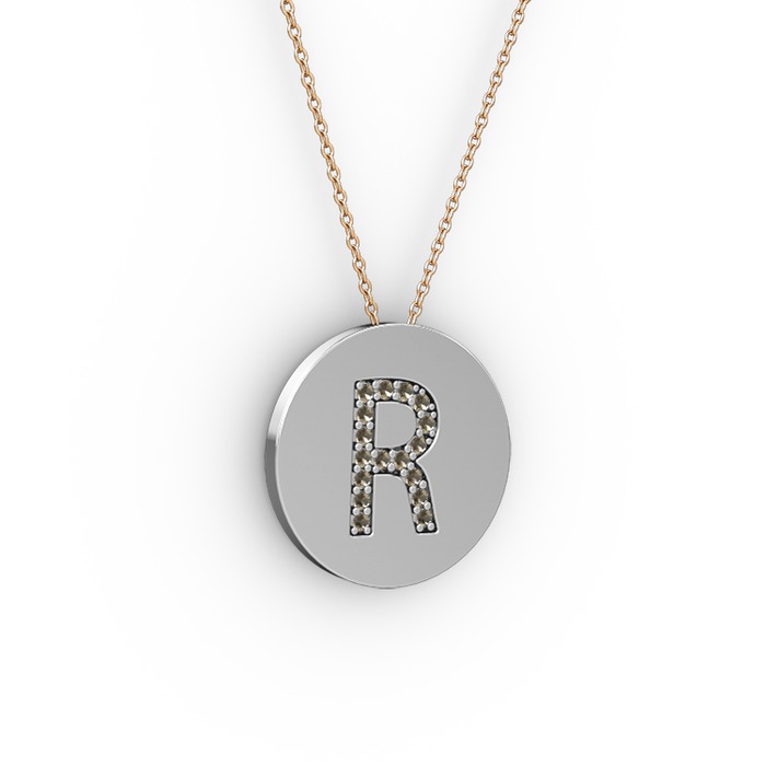 Dumanlı kuvars 18 ayar beyaz altın kolye (40 cm rose altın rolo zincir)