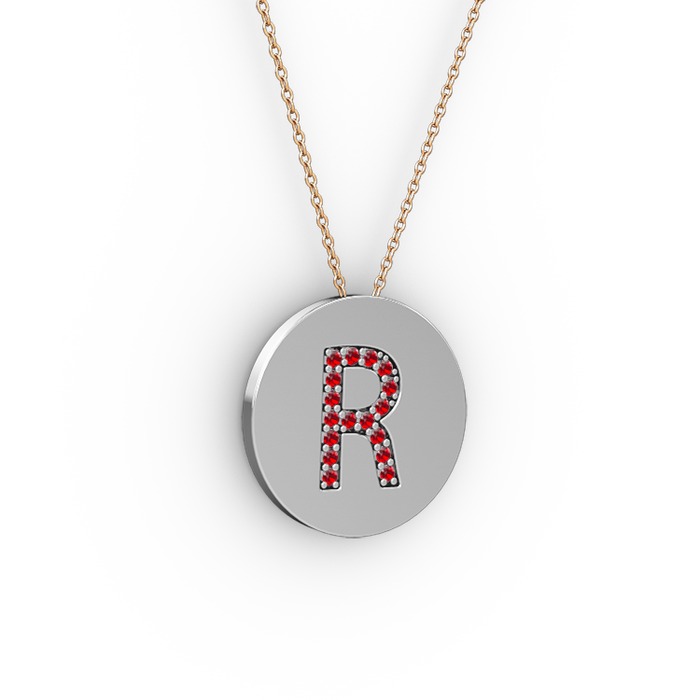 Garnet 8 ayar beyaz altın kolye (40 cm rose altın rolo zincir)