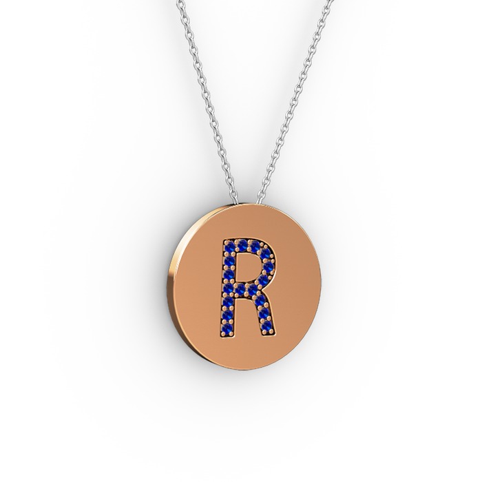 Lab safir 14 ayar rose altın kolye (40 cm beyaz altın rolo zincir)