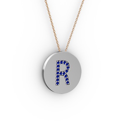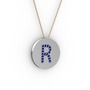 Lab safir 18 ayar beyaz altın kolye (40 cm rose altın rolo zincir)