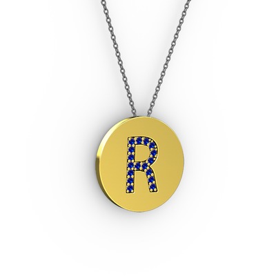 Lab safir 925 ayar altın kaplama gümüş kolye (40 cm gümüş rolo zincir)