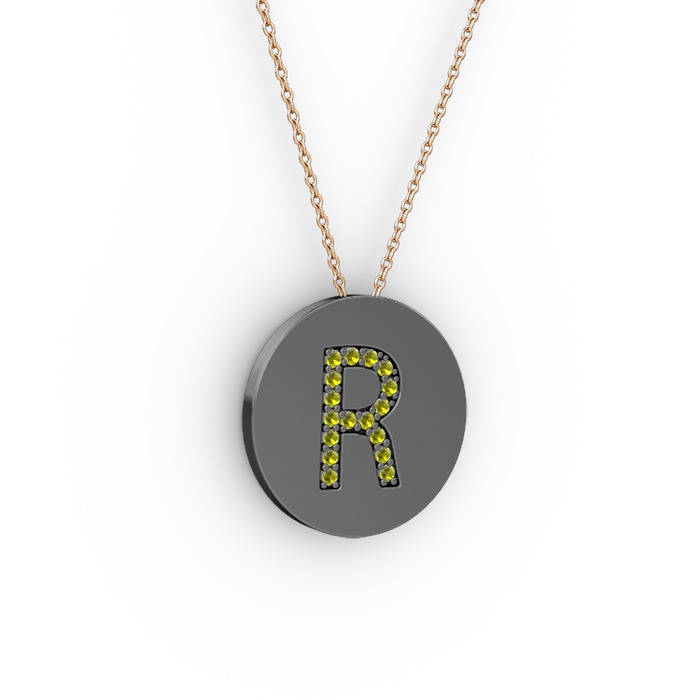 Peridot 925 ayar siyah rodyum kaplama gümüş kolye (40 cm rose altın rolo zincir)