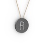 Pırlanta 925 ayar siyah rodyum kaplama gümüş kolye (0.1496 karat, 40 cm rose altın rolo zincir)