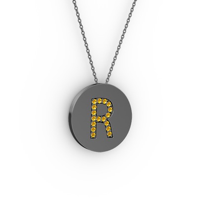 Sitrin 925 ayar siyah rodyum kaplama gümüş kolye (40 cm gümüş rolo zincir)