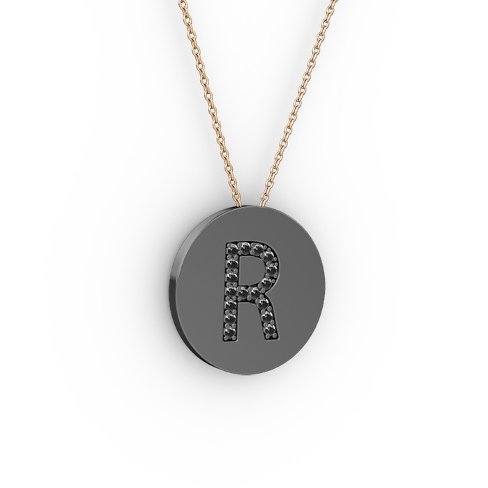 Siyah zirkon 925 ayar siyah rodyum kaplama gümüş kolye (40 cm rose altın rolo zincir)