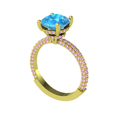 Akuamarin ve pembe kuvars 14 ayar altın yüzük
