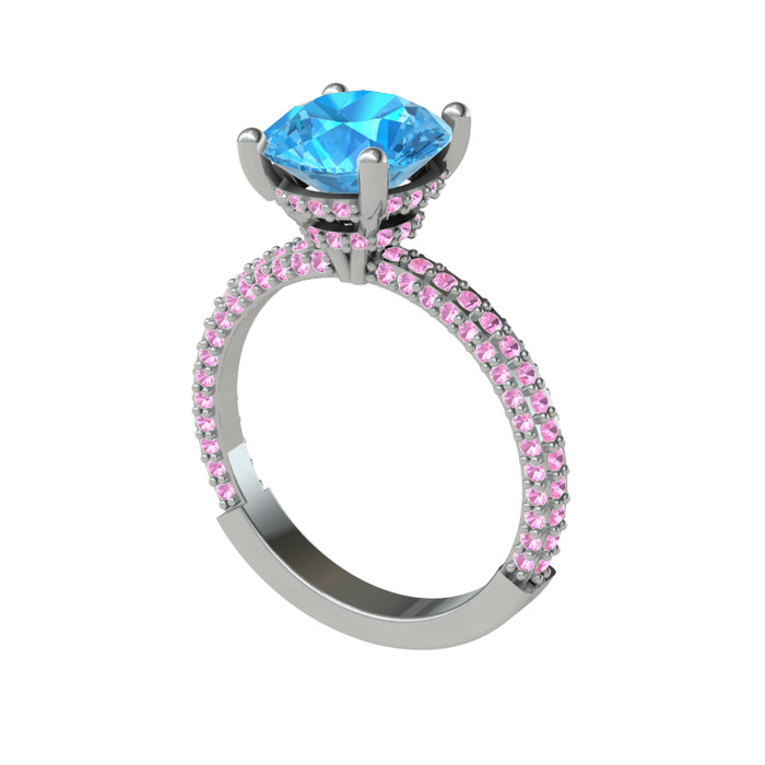 Akuamarin ve pembe kuvars 14 ayar beyaz altın yüzük