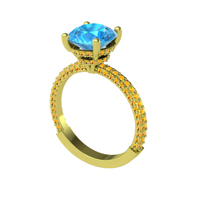 Akuamarin ve sitrin 14 ayar altın yüzük