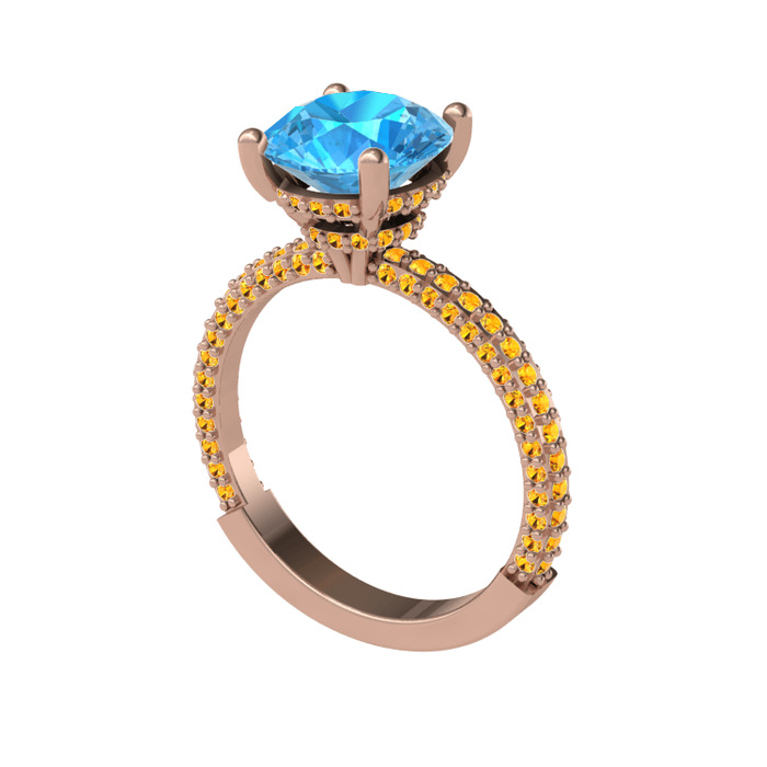 Akuamarin ve sitrin 925 ayar rose altın kaplama gümüş yüzük
