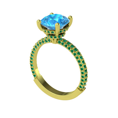 Akuamarin ve yeşil kuvars 18 ayar altın yüzük