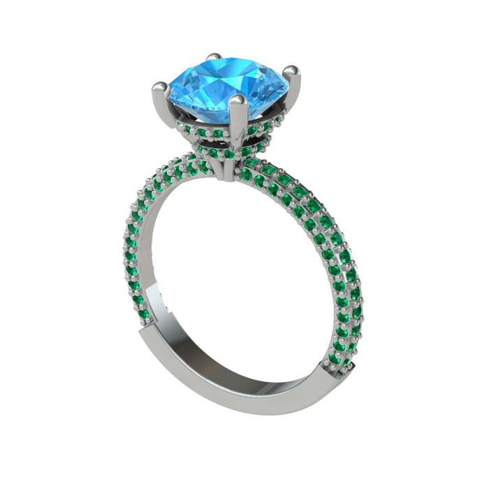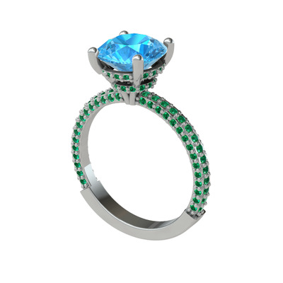 Akuamarin ve yeşil kuvars 925 ayar gümüş yüzük